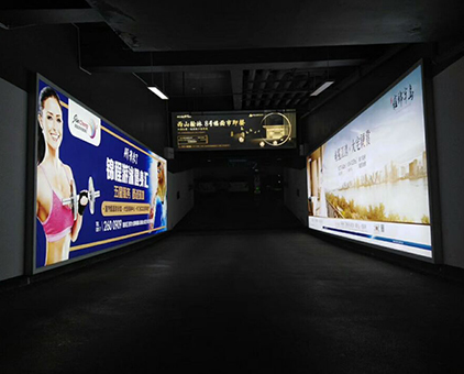 停車場室內(nèi)廣告拉布燈箱—該項目由我司提供鋁型材、LED燈、畫面以及技術安裝指導(不含安裝),全部燈箱都以墻面壁掛式展現(xiàn),燈箱安裝的完成的同時普通的停車場也升級形成了一道亮麗的廣告風采!